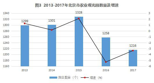 近年來,北京市休閑農(nóng)業(yè)和鄉(xiāng)村旅游的接待人數(shù)和產(chǎn)業(yè)規(guī)模在不斷擴(kuò)大(圖1、圖2),而休閑農(nóng)業(yè) 園區(qū)的數(shù)量在不斷減少(圖3),表明了休閑農(nóng)業(yè)園區(qū)之間存在著激烈競爭,大量經(jīng)營狀況不好的休閑農(nóng)業(yè)園區(qū)會面臨市場的淘汰,優(yōu)質(zhì)的客源會流向經(jīng)營狀況更好、服務(wù)更優(yōu)質(zhì)、運(yùn)營更專業(yè)的園區(qū)。