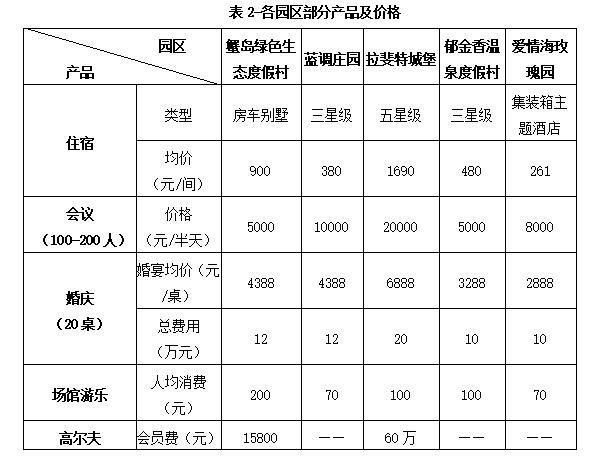 消費(fèi)人群、硬件設(shè)施、服務(wù)決定了產(chǎn)品的消費(fèi)價格。拉斐特城堡針對精英階層,裝修豪華、設(shè)施高檔、五星級服務(wù),產(chǎn)品偏高端化,消費(fèi)價格也最高。愛情海玫瑰園的針對情侶、親子等消費(fèi)人群,產(chǎn)品偏低端化,消費(fèi)價格較低。