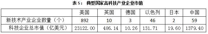 (2)從市值總額上,美國遙遙領先,高科技企業總市值高達23122億美元,中國緊隨其后,1379.4億美元;英國位列第三,為486.14億美元;以色列位于第四名,131.71億美元;日本、德國相對較弱。