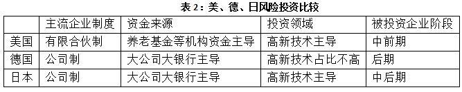 直接融資主導的美國,在風險投資的運作模式基本成熟,而間接融資模式主導的日本和德國現(xiàn)代體制還有待健全。