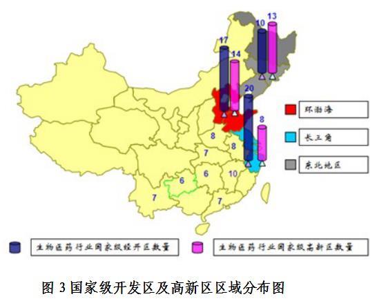 三、從各地區生物醫藥行業國家級經濟開發區和高新區分布來看,仍以長三角、環渤海和東北地區為主