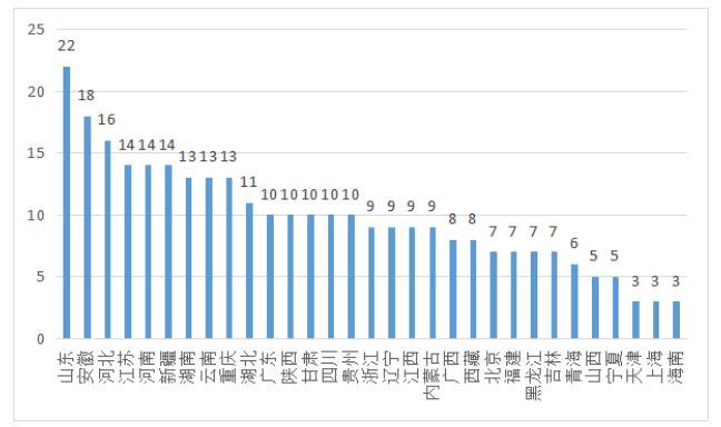 圖1各省(市)國家農業科技園區數量(個)