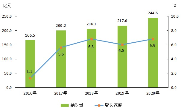 2016年-2020年陽城縣生產總值及增長速度