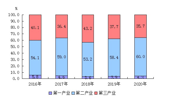 2016年-2020年陽城縣三次產業結構情況