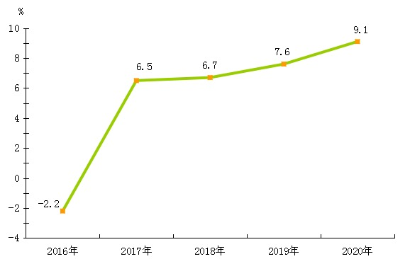 2016年-2020年陽城縣規模以上工業增加值增長速度