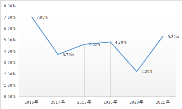 圖3-1 2016-2021年石化規模以上企業工業增加值增速