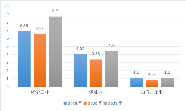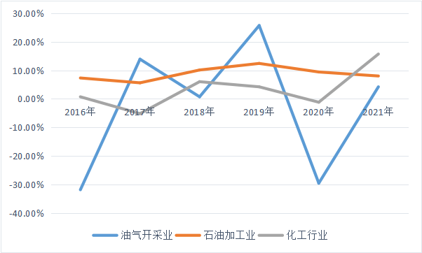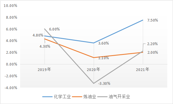 ——產業規模持續增長。2021年全行業規模以上企業實現工業增加值同比增長5.3%,油氣開采、煉油業、化工行業三大主要板塊增加值均有不同程度增長。