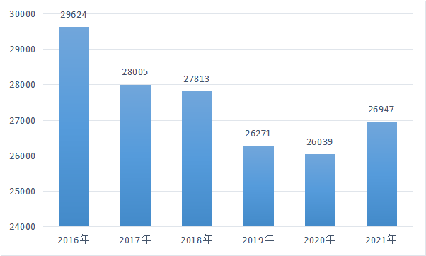 圖3-3 2016-2021石化行業規上企業數量變化(家)