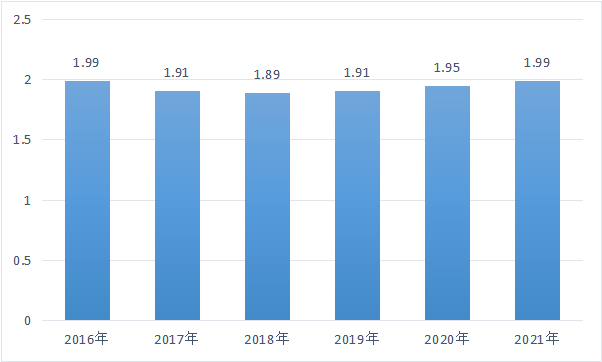 圖3-9 2016-2021年國內原油產量(億噸)