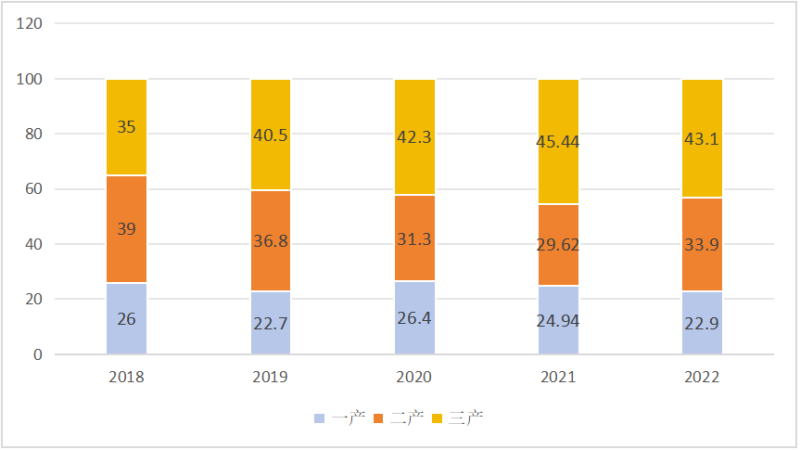 圖表4:2018-2022年江陵縣三次產業結構變化