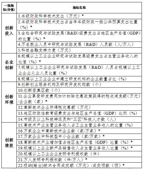 創新型縣(市、區)培育建設指標體系