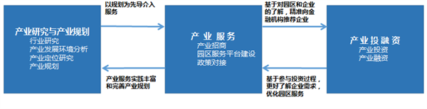 以產(chǎn)業(yè)研究與產(chǎn)業(yè)規(guī)劃為先導(dǎo),鎖定和跟蹤一批重點(diǎn)園區(qū),為其提供深入產(chǎn)業(yè)服務(wù),解決其發(fā)展過程中急需解決的問題;在服務(wù)園區(qū)及其相關(guān)企業(yè)的過程中,為質(zhì)地優(yōu)良的園區(qū)和企業(yè)提供投融資服務(wù),以實(shí)現(xiàn)園區(qū)、被服務(wù)企業(yè)和公司持續(xù)共贏為基本特征,最終將公司發(fā)展成橫跨全產(chǎn)業(yè)鏈輕資產(chǎn)產(chǎn)業(yè)服務(wù)商。