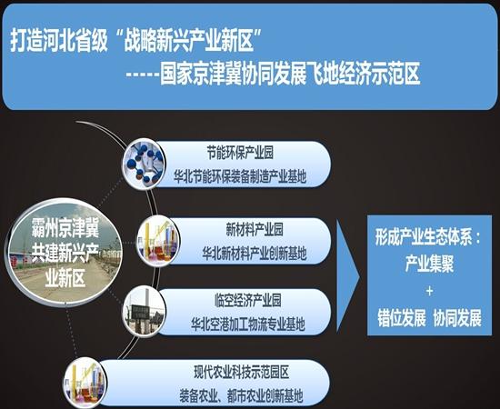 搶抓京津冀協同發展和新型城鎮化的國家戰略等重大機遇,立足廊坊,面向京津冀,放眼全球,霸州新興產業新區將按照“產業發展高端化、園區發展集約化”的理念,以生態文明建設為目標,立足“特色突出、生態和諧、科技創新”等特色,打造綠色、生態、低碳、環保的新型產業集聚區。在大的規劃背景下,全力打造環境清新優美、基礎設施完善、產業高度聚集、自助創新活躍、推動區域發展,能夠實現產城融合的新型產業功能區,助力京津冀協同發展。
